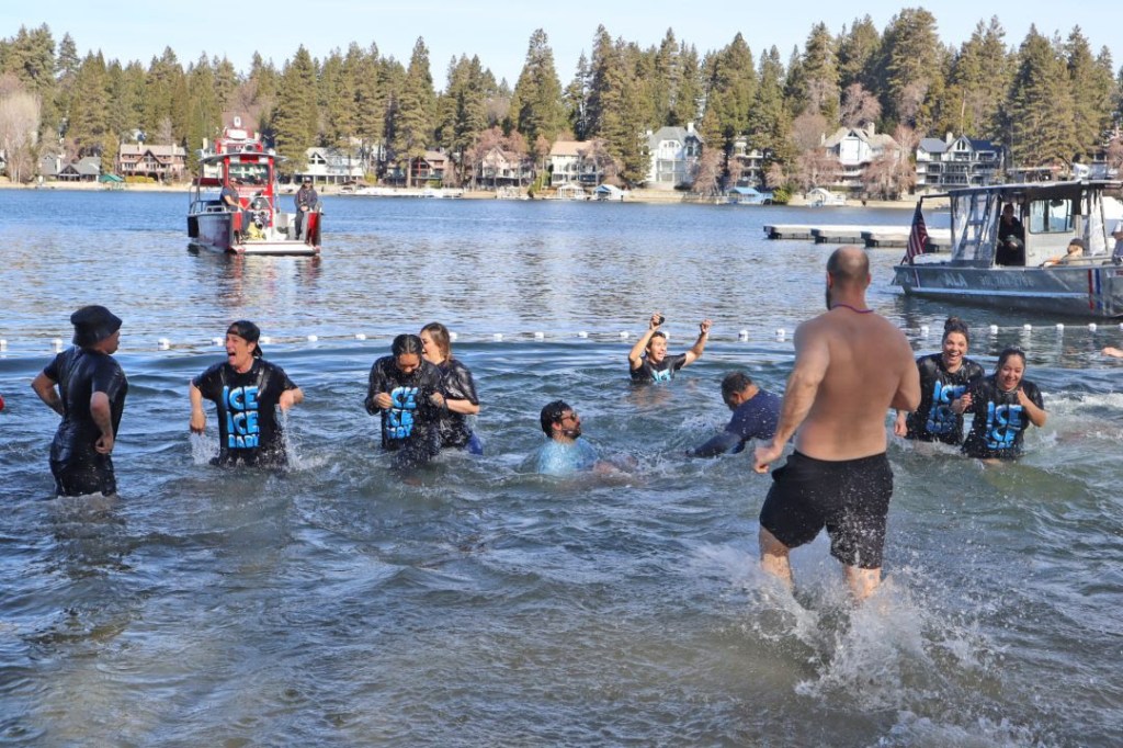 freezing cold waters of Lake Arrowhead on February 1, 2025 to support