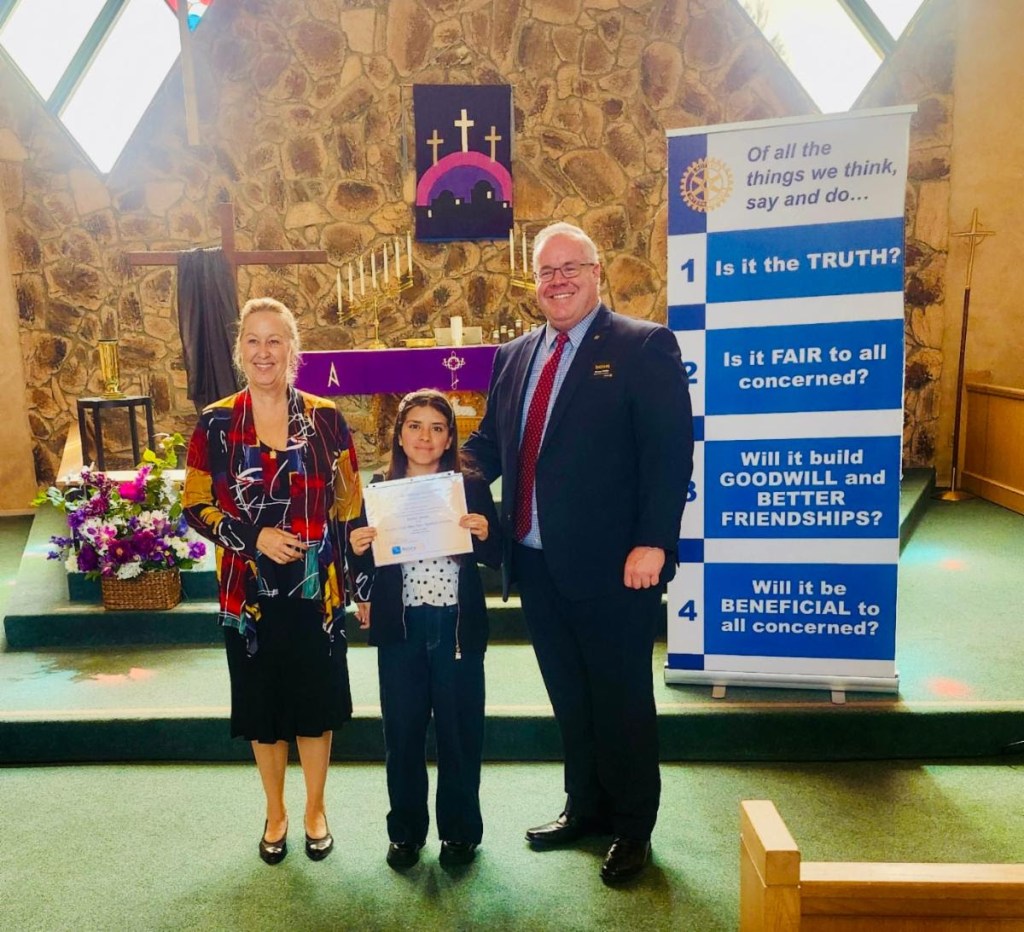Congratulations to RIM High School student, Valentina Chavez, for receiving honorable mention for her 4 Way Test Speech. Vocational Service co-chair, Elizabeth Whitney-Olivas was Valentina’s advisor. We are so proud!